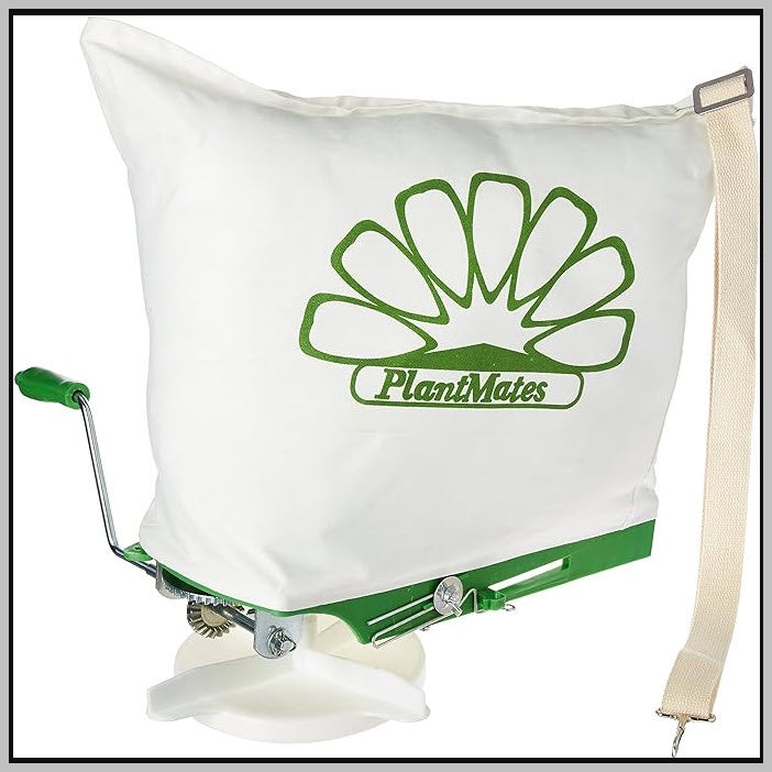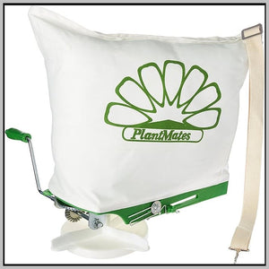 Professional Shoulder Bag spreader, waterproof heavy duty zipper top Canvas bag to hold approximately 25 lbs, stainless steel rate gate, adjustable strap, adjustable feed. Holds approximately 25# of fertilizer.