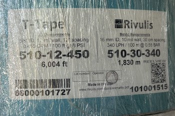 10 mil 12" .45 flow rate 6000' Drip tape is a thin walled drip line used in drip irrigation. Drip tape is made of Special grade polyethylene material. It is also called as collapsible hose, once pressurized it becomes round and collapses on depressurizing. Being a flat tube it can be supplied on reels containing several thousand feet. It can be used for surface and subsurface applications.