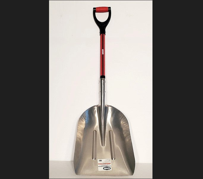 Aluminum scoop with D Grip handle is ideal for the transport of all materials, loose and bulky. It is durable and lightweight for snow removal. Shovel