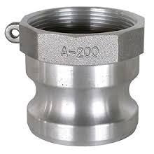 Type "A" aluminum 4.0 inch male camlock (Cam and Groove) coupler to 4.0 inch female NPT threads. Under no circumstances should cam and groove couplings be used for compressed air or steam service. Connections: The male side of this adapter will only connect to 4" female camlock.