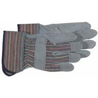 Split leather palm, index finger, finger tips, thumb, pull and knuckle strap. Gunn-cut design, Wing thumb, Shirred elastic black, Rubberized cotton safety cuff