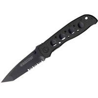 Knife Bullseye Extreme Ops Black Serrated Blade Tan Handle.